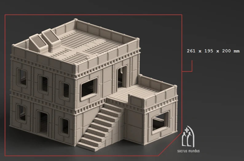 The AeranIII 1 Housing Block is a modern and functional residential structure, ideal for creating an urban environment in your gaming scenarios. This building features multiple levels and architectural details that reflect a contemporary design.