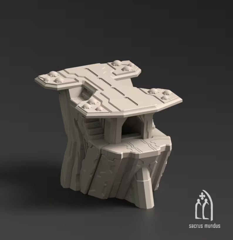 The Delta Platform is a detailed, futuristic structure designed to add a touch of industry and strategy to your gaming scenarios.This platform features multiple levels, a sturdy base and architectural details that reflect the modern and enigmatic style of the planet Delta.Available in 28mm/32mm scale, the Delta Platform provides an intriguing and story-driven environment for your sci-fi and fantasy adventures, enhancing the immersion and dynamics of your games.