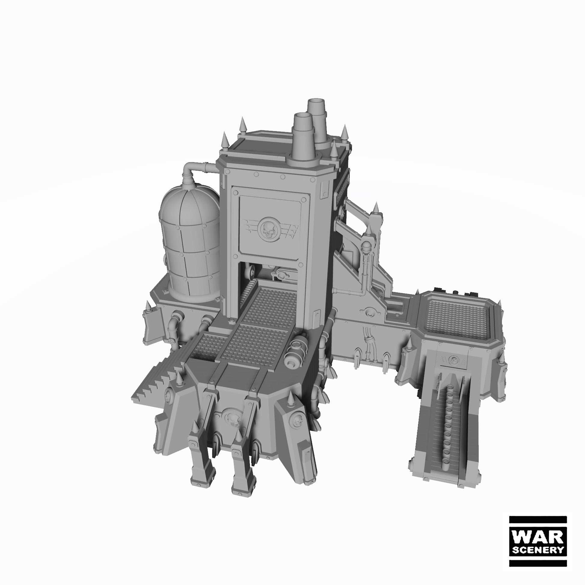 The Factory is a modular building designed for wargaming and role-playing, available in 28mm, 32mm and 40mm scales. This terrain includes industrial details such as chimneys, machinery and production areas, making it perfect for sci-fi, modern or post-apocalyptic scenarios. Its versatile design allows it to be integrated into various game configurations, adding realism and dynamism to your games.