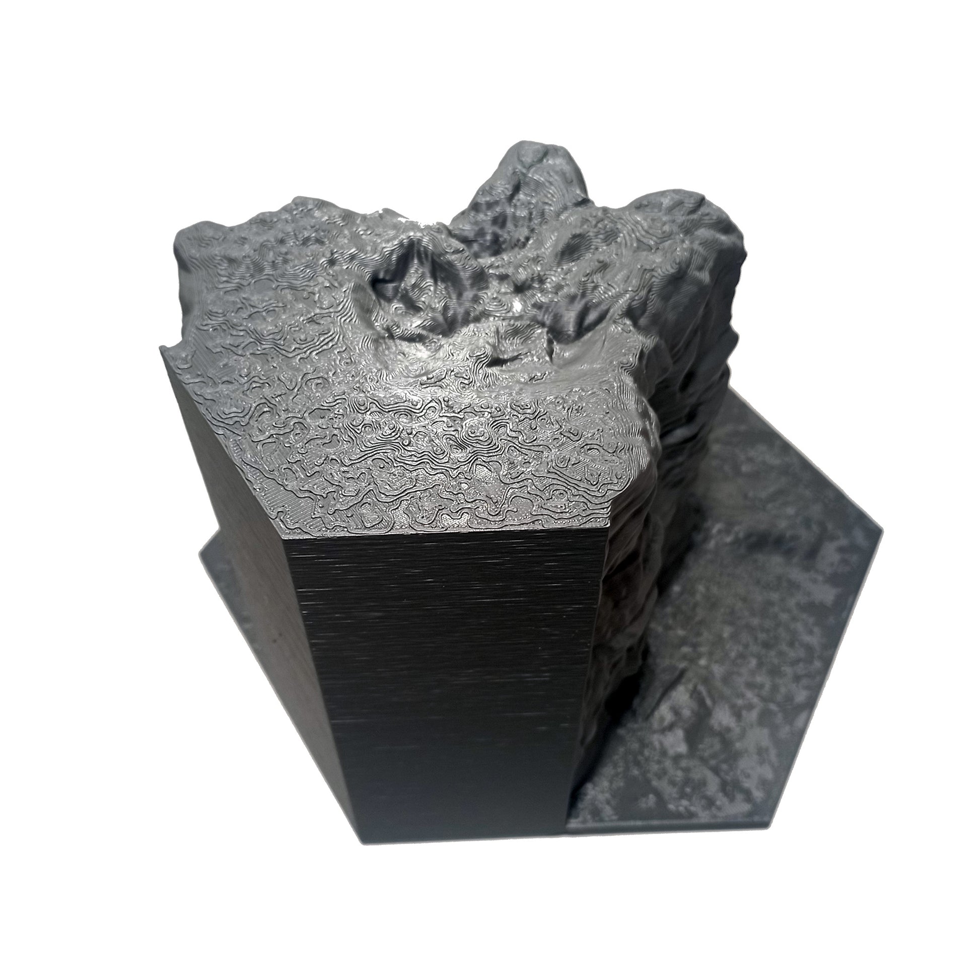 We use the additive manufacturing process and convert digital models into physical objects (3D) by superimposing layers of 100% recycled and biodegradable PLA filament.