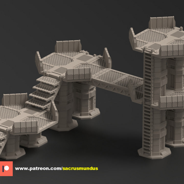 Kyhlden Platforms are detailed and futuristic structures, ideal for adding a touch of industry and mystery to your game scenarios. These platforms feature multiple levels, sturdy bases and architectural details that reflect the dark and enigmatic style of the planet Kyhlden. Available in 28mm scale, Kyhlden Platforms provide an intriguing and story-driven environment for your sci-fi and fantasy adventures, enhancing the immersion and dynamics of your games.
