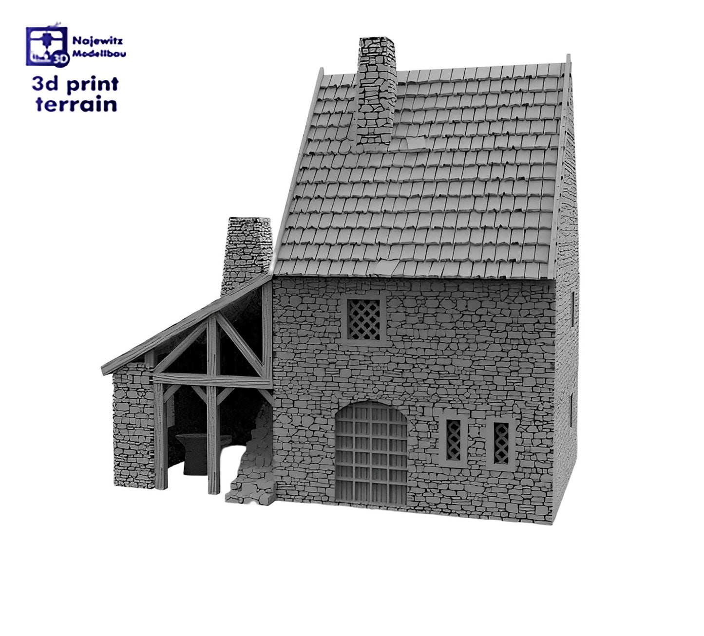 Medieval forge inspired by European medieval buildings (1066-1496). You can choose a whole building made of stone or stone on the ground floor and wood on the upper floor.
