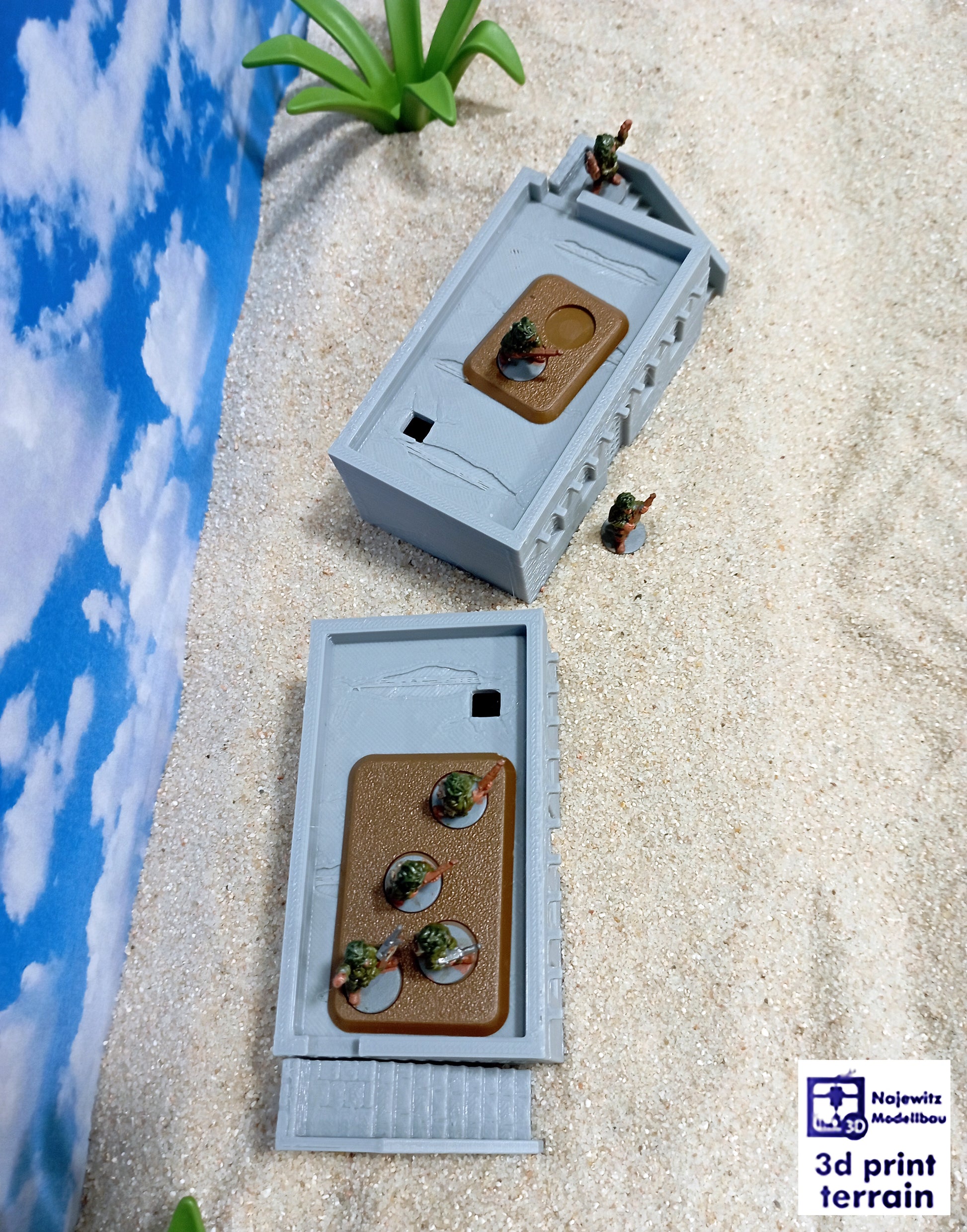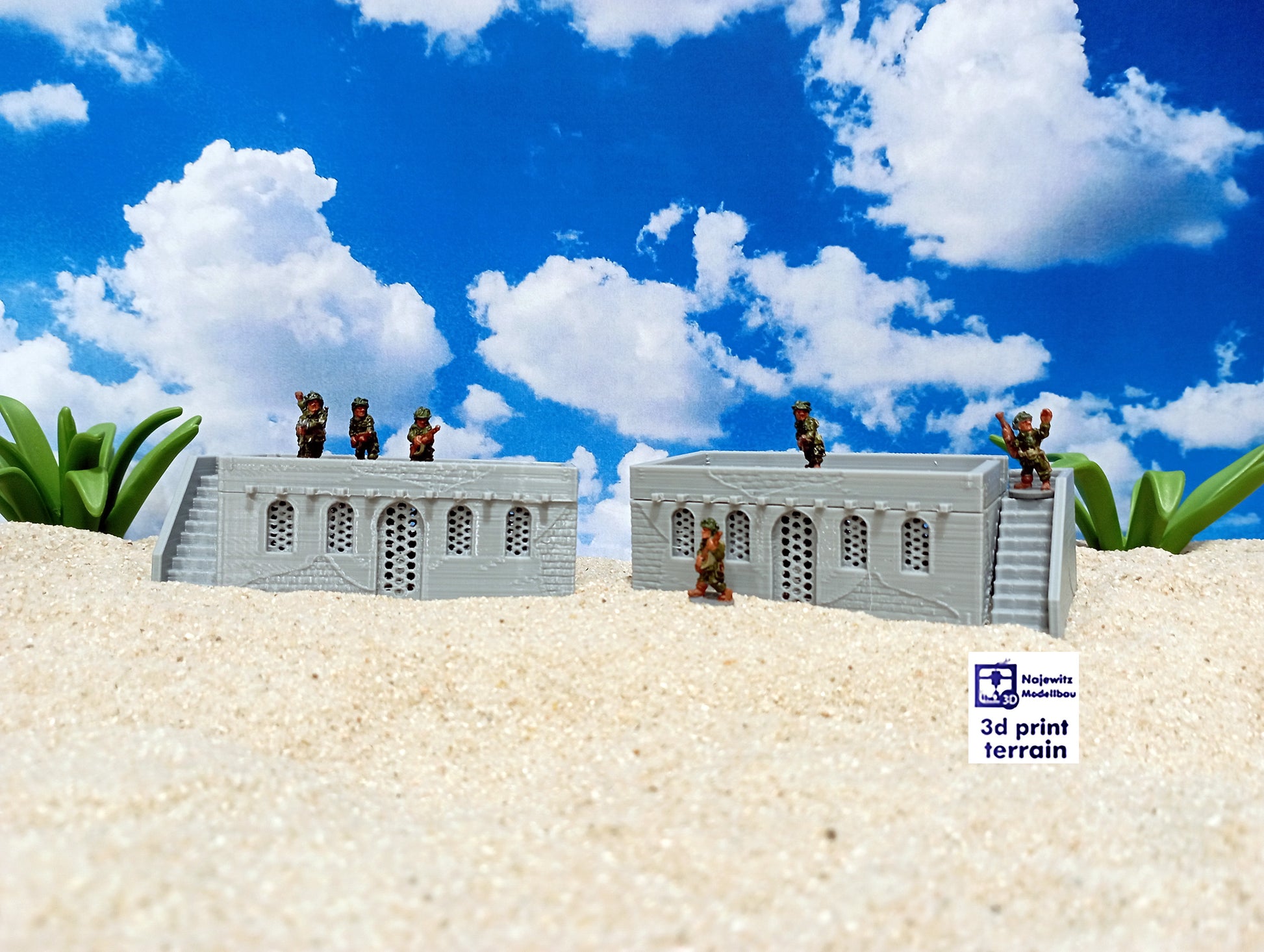 2 differently shaped buildings for your favourite board games in desert areas like North Africa.