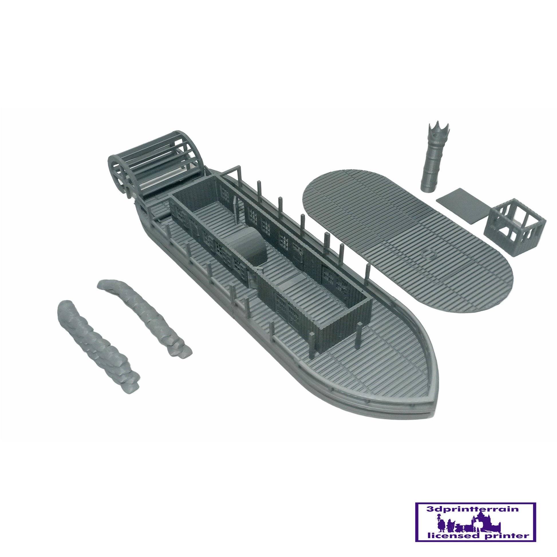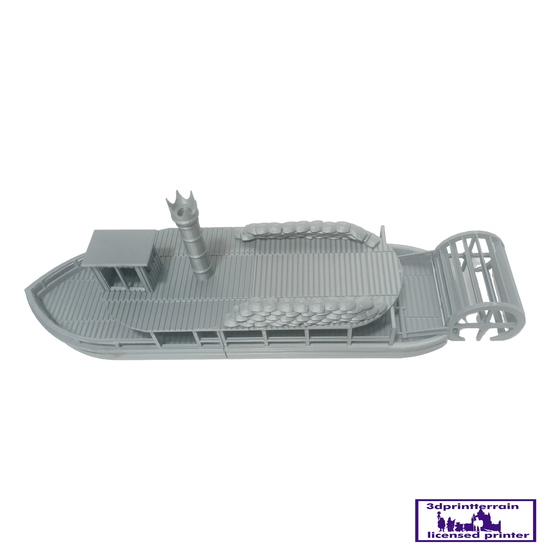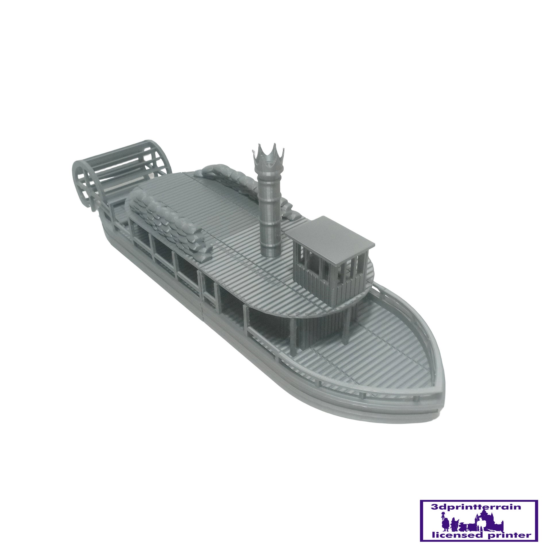Steamboat available in small and large version. Designed for the American Civil War.The model comes in kit form and superglue (cyanoacrylate) is required for assembly. The roofs can be removed to access the interior.