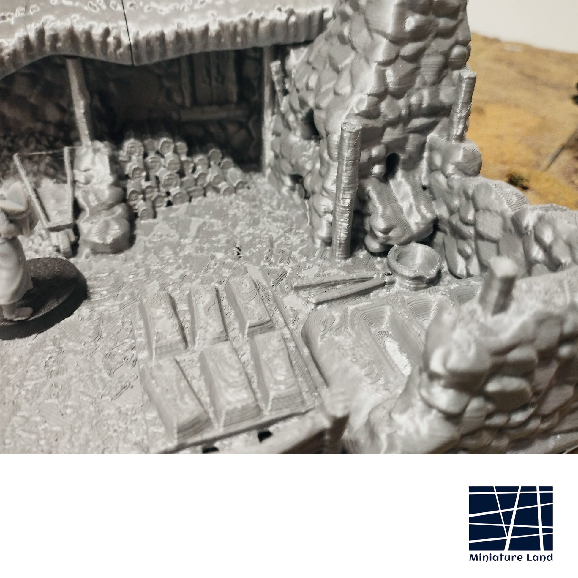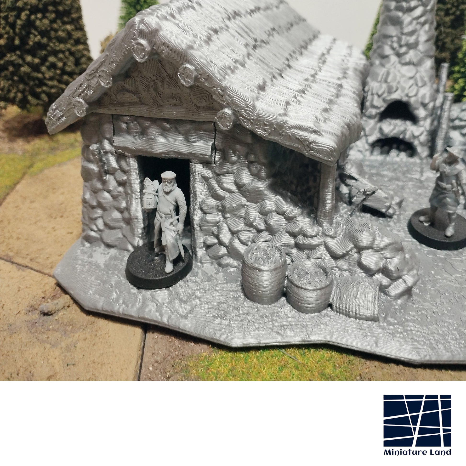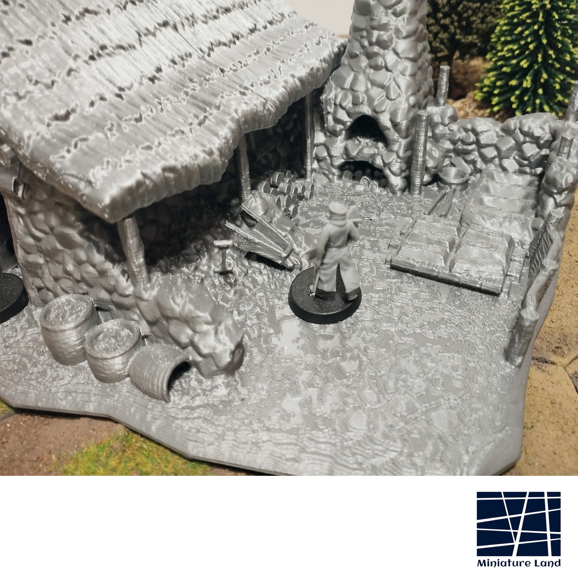 In 28mm scale, the tannery measures 19.4x21.5x14cm / 7.6x8.4x5.5 inches.